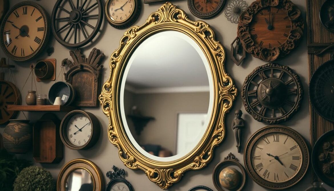 Retro-Spiegel ergänzen gut die Wandgestaltung. Leichte Rahmen und spezielle Systeme sind ideal für Mietwohnungen.